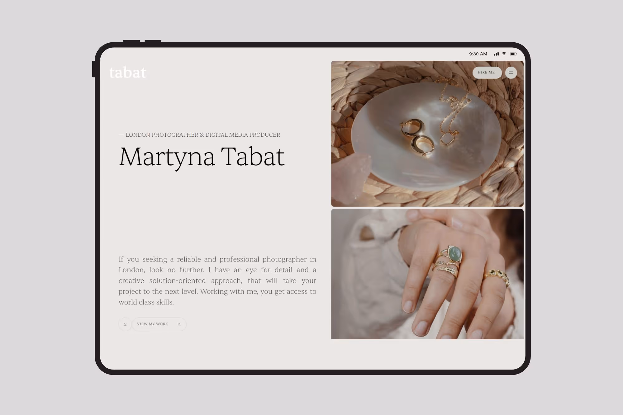 Autorski układ stron: spójna struktura dla Home, Portfolio, Cennika, O mnie i Kontaktu, która ułatwia nawigację i trzyma markę w jednym stylu.