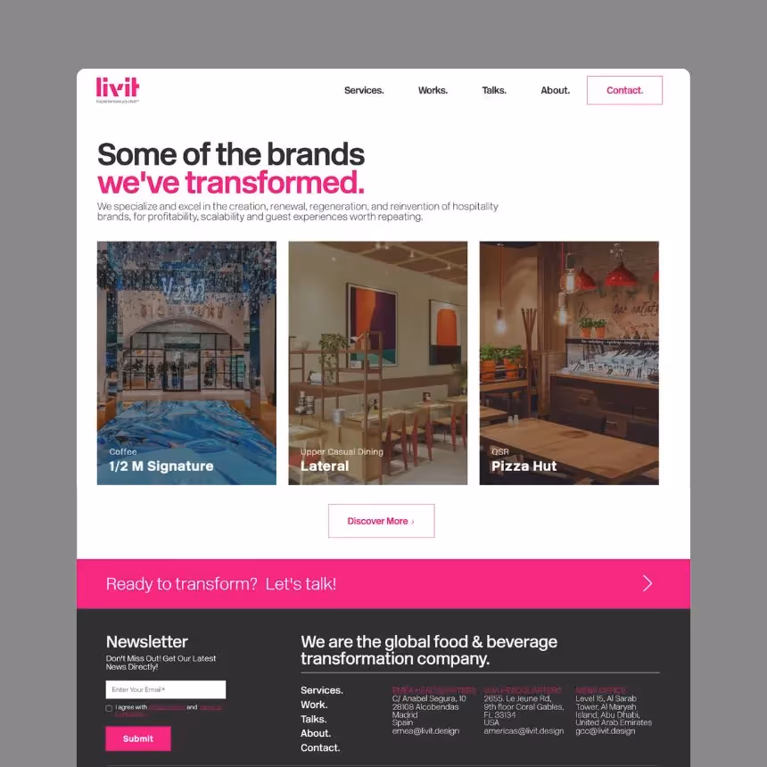 Custom Design System: Developed a clean, high-impact design language with structured grids, strong typography, and imagery that celebrates Livit’s hospitality projects.