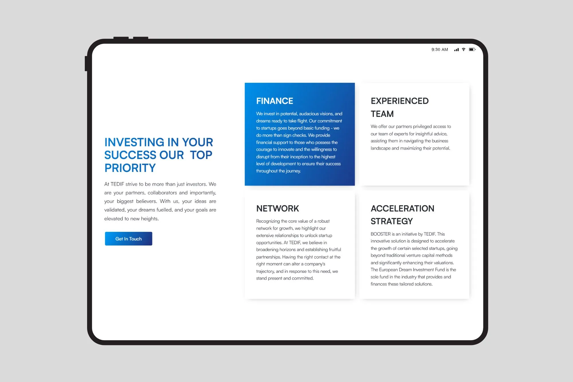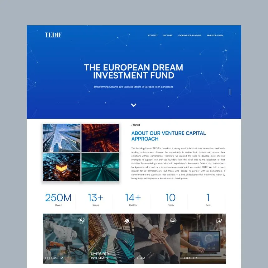 TEDIF needed to communicate a big mission and a broad investment scope (multiple tech sectors, multi-stage investing) without overwhelming visitors - while also serving two very different audiences: founders looking for funding and investors needing confidence, clarity,and access.